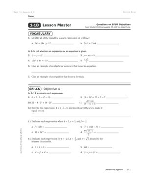 Read Online Lesson Master 8 1b Answers Kindle Editon